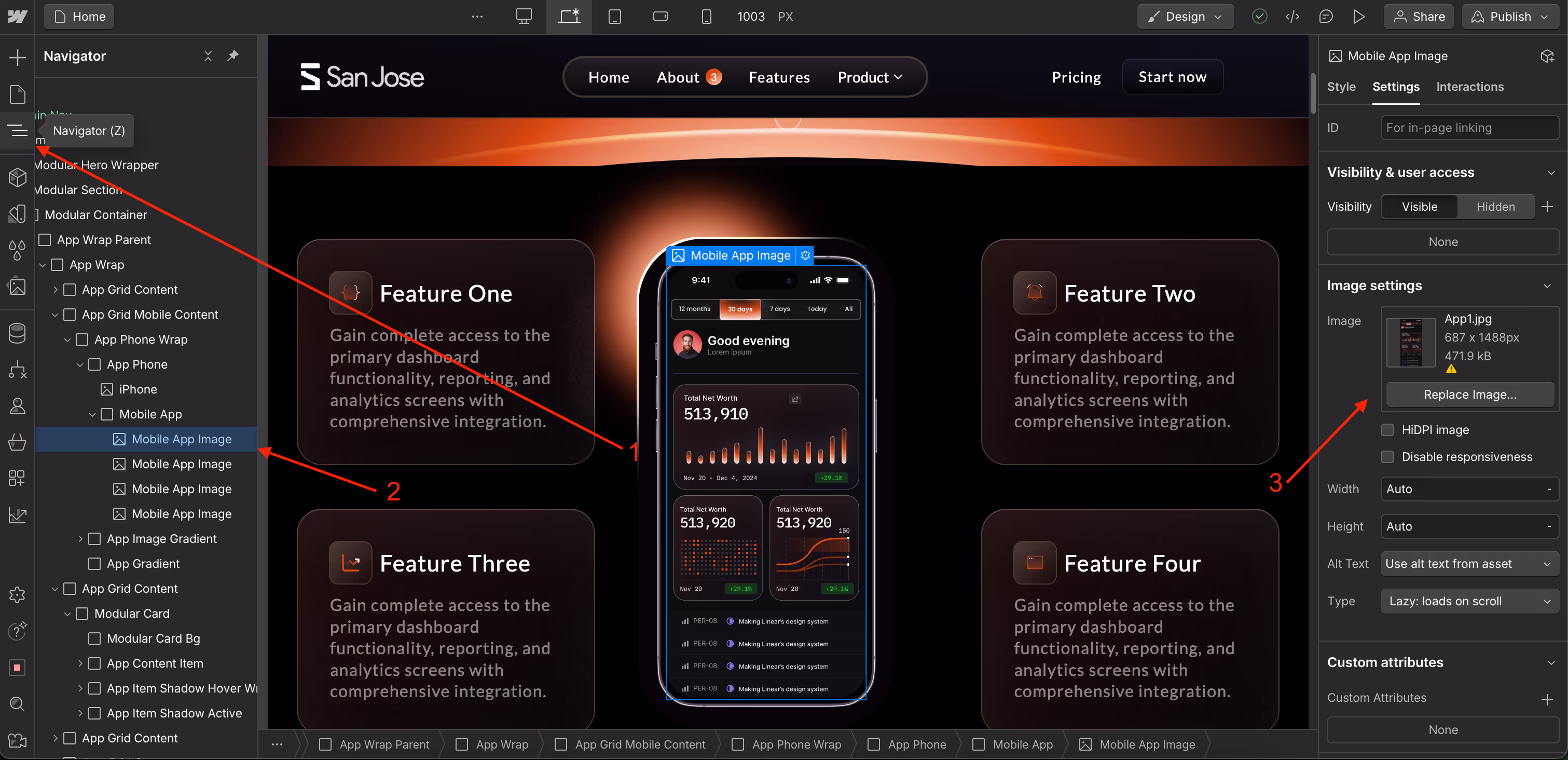 1. Click the Navigator2. Go to Mobile App Image3. Update App Dashboard Image with your App ImageEnjoy :)